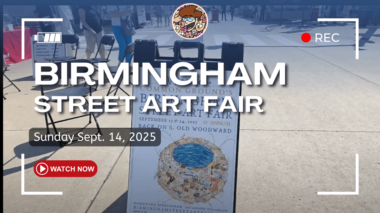 A short livestream of me walking around Common Ground’s Birmingham Street Art Fair in downtown Birmingham, Michigan. I wasn’t selling, just helping Steph Joy Hogan with her festival booth. I took a few minutes to walk around and show everything on my livestream.